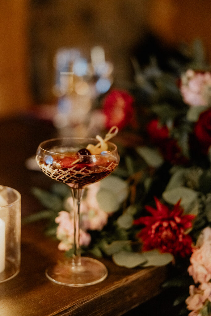 Paulina and Mark’s cocktail hour had personal details and even seasonal touches that felt true to them. Their signature drinks were a black Manhattan and a pumpkin espresso martini, which fit the fall vibe perfectly! Their custom drink menu and napkins included their dog, Bailey, which added such a personal touch to their Farmhouse wedding in Hampton, NJ.